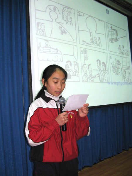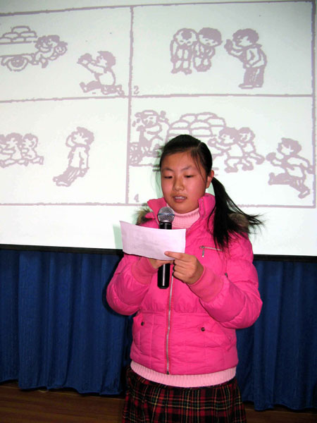 据悉,此次比赛是初2006级举行的英语风采大赛系列活动之一,接下来还将进行“把你的耳朵叫醒”(听力比赛)、“妙语晶莹”(写作比赛)、“单词翻翻”等赛事。