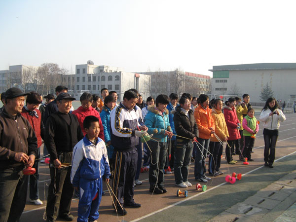 淄博市空竹协会以纪念改革开放三十年为主题的空竹交流活动在我校学生空竹社团的大力支持下,圆满举行,五区三县的空竹爱好者与我校学生空竹社团的成员们开展了丰富多彩的空竹交流活动,极大地提高了同学们的活动兴趣。在活动现场,包括淄博空竹协会会长、秘书长在内的淄博市众多空竹高手,一展身手,形态各异的空竹翻飞起舞,物我合一、出神入化,极大地开阔了我校学生的眼界。我校学生空竹社团的表演也赢得了专家的阵阵掌声,充分说明我校社团活动的成果喜人。学校副校长李诚代表学校参加并致词,团委书记梁慎超参加了欢迎仪式。活动的圆满举办,开创了我校学生社团活动与社会、外界的协办模式,为我校社团活动提供了一条新的思路:联系社会,增进交流,提高水平,展示自我。以此次活动为契机,加强与社会团体的联系,相信我校社团活动会更快,更好地发展。