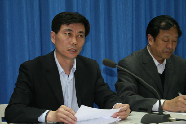孙希刚主席宣读《淄博一中深入学习实践科学发展观活动宣传方案》