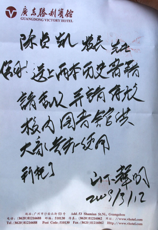近日,我校高十级日本籍校友山下辉明致信陈贞凯校长,并向母校捐赠两部历史书籍——《满洲事变》和《北支》。
