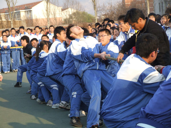 为了丰富同学们的校园课余体育生活,倡导健康文明的生活方式,培养学生加强体育锻炼的思想意识,在第六周和第七周,高08级举办了拔河比赛。历经了多场的激烈对抗,比赛圆满落下帷幕。