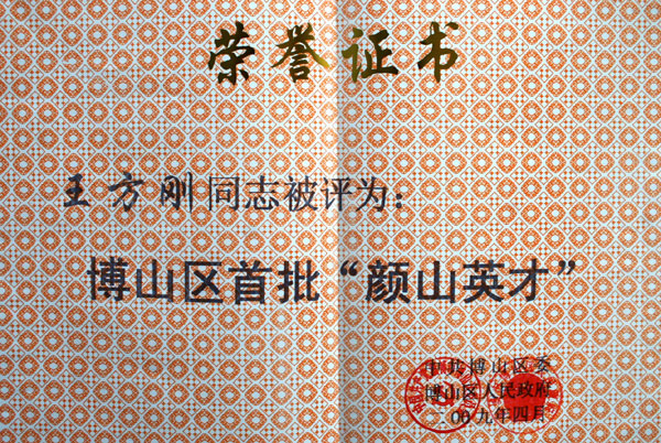 王方刚老师荣获博山区首批“颜山英才”称号