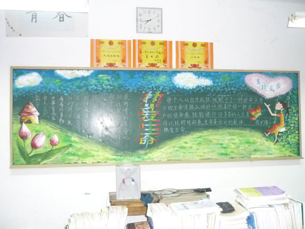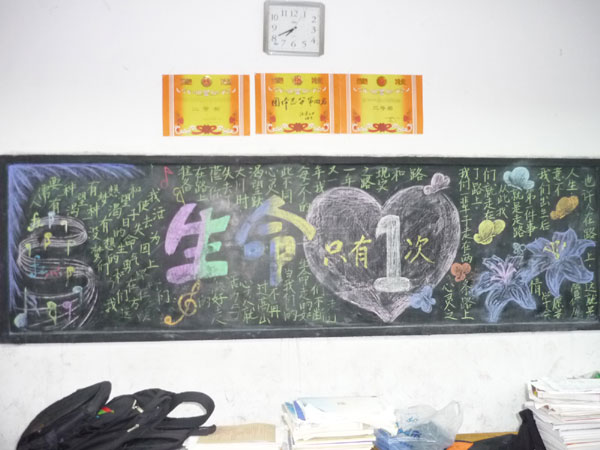 以团总支、学生会牵头组织的“尊重生命、珍爱生命”主题黑板报比赛,主题鲜明、内容充实、布局合理、色调庄重,充分展示了同学们的才华,使每一位同学既受到了良好的生命教育,又得到了美的享受。