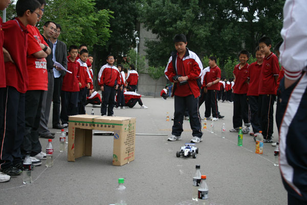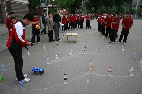 我校举行“校园F1”大赛 日期:2009-05-15 来源:本站 X 5月14日,我校成功举行科技节系列活动之一----“遥控车障碍赛”。这项赛事已举办多届,深受同学们的欢迎,被同学们称为“校园F1大赛”。同学们报名踊跃,摩拳擦掌,准备在赛场上一展风采。各式各样的赛车在主席台上等待检阅,你方赛罢我登场,比赛开始,在同学们的加油助威声中,一辆辆赛车如离弦之箭,“钻地洞”、“急拐弯”、“过沙滩”、“撞胜利瓶”,最后到达胜利的终点。 比赛的举行丰富了同学们的课余生活。外语学校积极落实素质教育的各项要求,精心设计开展形式多样的学生活动,以活动为载体,使学生在活动中锻炼,在活动中感悟,努力把学校打造成一个幸福的共同体。