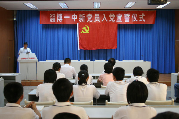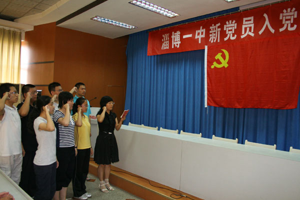 宣誓仪式在雄壮的《国际歌》声中开始,7名新党员面向党旗进行了庄严宣誓。团委书记梁慎超、新党员代表蒋楠、入党积极分子代表徐姮先后发言。党委书记司志宏在讲话中勉励大家要时刻牢记“今天你以淄博一中为荣,明天淄博一中以你为荣”的信念,勤奋学习,勇于实践,早日成才,为母校争光,为党旗添采!校长陈贞凯出席仪式并与大家合影留念。