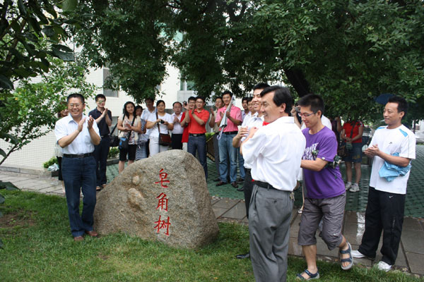7月11日,暑假第一天。雨中的校园格外美丽,校园内欢声笑语,绿地、鲜花,亲切映衬着一张张喜气洋洋的笑脸。我校高九一级六班校友与母校老师欢聚一堂,举行毕业十五周年同学聚会。学校党委书记司志宏应邀出席,该班班主任、校长助理李诚发言,代表学校欢迎各位校友回访母校。为表达对母校的感恩之情,全班同学为母校捐献文石并安放在茂盛的皂角树下,祝福母校明天更加辉煌、更加美好。(赵伟刚)