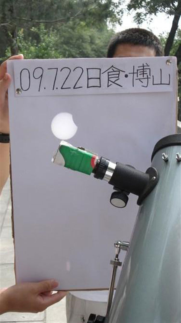 小孔成像,学生们打着这样的招牌在博山公园观测的