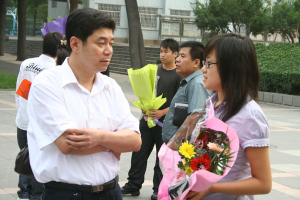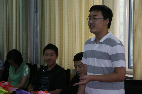 陈校长对即将远行的学子表示了热烈的祝贺。他希望学生们要时刻把祖国放在心中,不管走到哪里都做个堂堂正正的中国人。市招生办王主任对我校的出国留学工作做了充分的肯定,赞扬了我校在过去几年所作出的成绩,同时也对今后的出国留学工作提出了更加具体细致的要求。