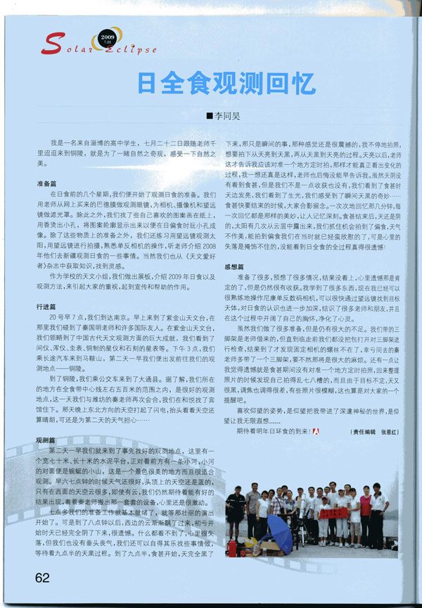 祝贺我校李同昊同学的文章在国家级刊物《天文爱好者》发表!