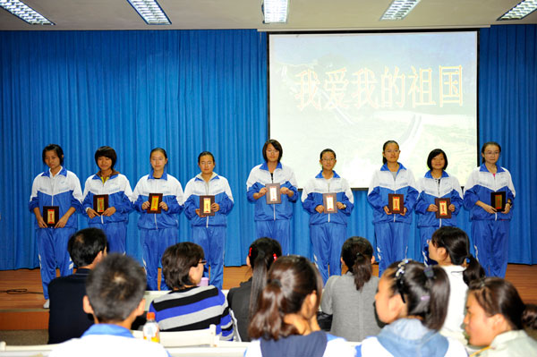 为迎接祖国60华诞,贯彻落实党的教育方针,全面推进学生的素质教育,丰富学生的文化生活,营造浓郁的校园文化氛围,不断提高学生的文化素养,我校高2009级于9月23日晚在校本部科技报告厅举行了“庆祝建国60周年——我爱我的祖国”演讲比赛。本次演讲比赛由学校团委牵头,由高一语文教研组协助组织实施,共有120余名同学观摩了比赛。