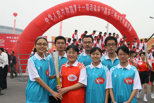 10月12日上午,第十一届全运会圣火在我市圆满完成了传递,5万余名淄博市民一起为全运圣火欢呼,一起祝福祖国、祝福全运。全国优秀教师、全国优秀班主任——我校贾福梅老师作为淄博市教育系统唯一一名教师代表参加了圣火传递。贾老师激动地说:“能代表全市广大教师参加火炬传递,不仅是我个人的光荣,更是淄博一中的荣耀,祝愿全运会圆满成功”。 我校6名学生作为全市优秀学生代表在火炬传递过程中担任护跑手。