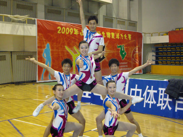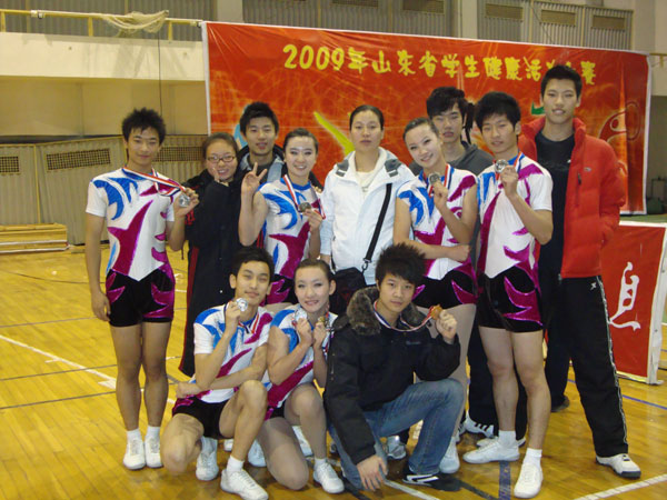 由省教育厅主办、山东财政学院承办的“2009年山东省学生活力健康大赛”于2009年11月15日至19日在山东财政学院举行。本次比赛分为大学组和高中组,其中高中组有18支队伍参赛。我校以08级学生为主选派了9名运动员参加了本次比赛。在校领导的大力支持和各级同仁的帮助下,我校学生获得了男子单人第三名、女子单人第二名、六人操第二名的成绩。参加本次比赛的08级学生全部获得了优秀运动员的资格。