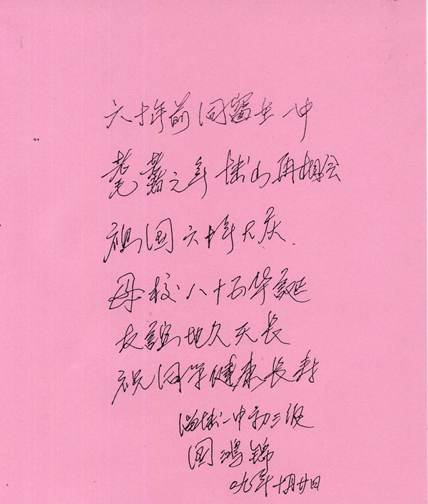 心语:部分老校友恭贺母校85华诞