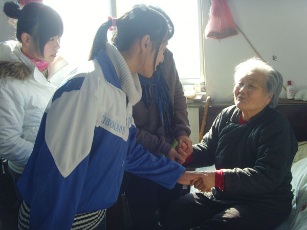 为大力弘扬“奉献、友爱、互助、互助、进步”的志愿者精神,12月13日,我校2009级的青年志愿者们来到山头镇敬老院和淄博念红敬老院,以丰富老人晚年生活为主题活动,为老人们带去了一片爱。