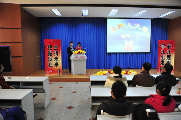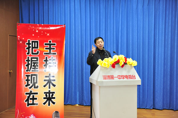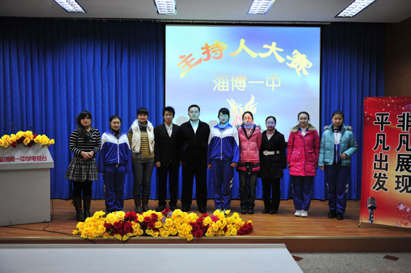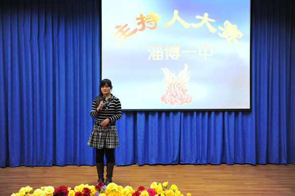 噢,别误会,这是淄博一中主持人大赛中的精彩镜头。