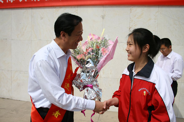 仪式上,学生代表向陈贞凯校长敬献了鲜花,表达了全校师生诚挚的祝贺之意和由衷的自豪之情。