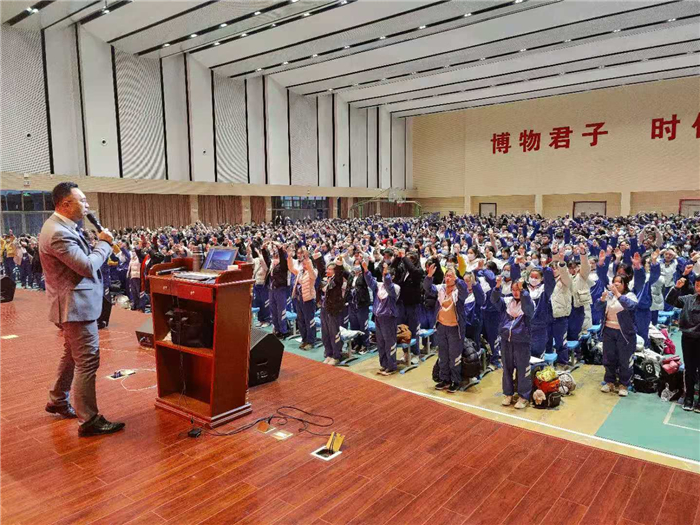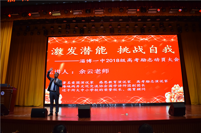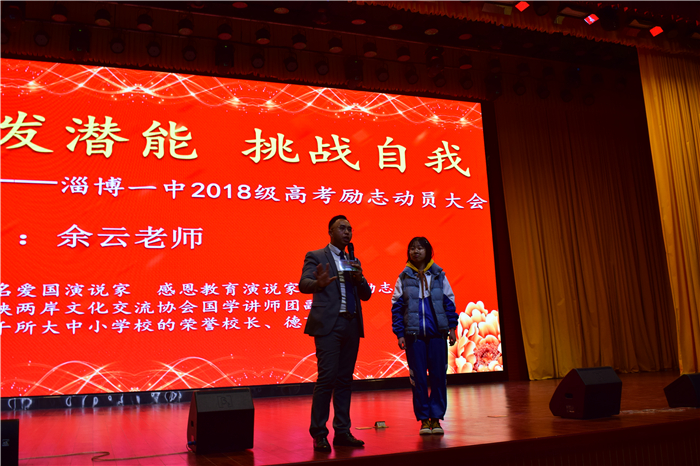 著名爱国演说家、感恩教育演说家、高考励志演说家、海峡两岸文化交流协会国学讲师团副团长余云老师以“激发潜能,挑战自我”为主题给学生们带来了一场积极奋进、昂扬向上的精彩报告。余老师针对学生当前学习激情度不高刻苦度不够,以满腔的热情和生动的案例,激励学生激发潜能奋力拼搏,竭尽全力备战高考,从现在开始,从点滴积累,通过努力实现自己的梦想。借助音乐和环境氛围,余老师以极具感染力和震撼力的心语,引领学生重温过去、反思自我,点燃学生内心澎湃的激情。在他的带动下,全场1400余名学生一起做整齐的加油手势,一起喊响亮的励志口号。现场的互动环节,学生纷纷上台参与互动,大声喊出自己的高考目标、心仪的高校,希望在班主任和各位任课老师的帮助下,努力拼搏,成就自己!