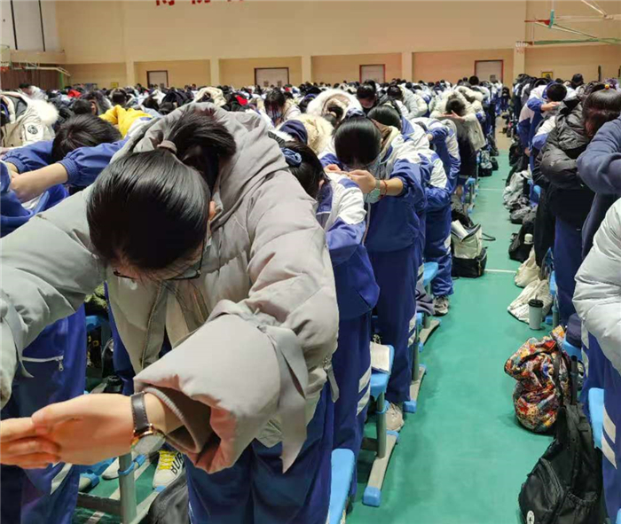 在感恩环节,余老师引导学生们共同感谢父母含辛茹苦的养育之恩,感恩学校老师诲人不倦的教育之情,懂得感恩才能走得更长远。学生在提到父母、老师时纷纷潸然泪下,大声喊出对父母的爱,以虔诚的拜师礼和深情的拥抱向在场的班主任表达感谢,让现场的班主任为之动容。报告最后在学生振聋发聩的“我一定能行,高考加油”的呐喊声中结束。