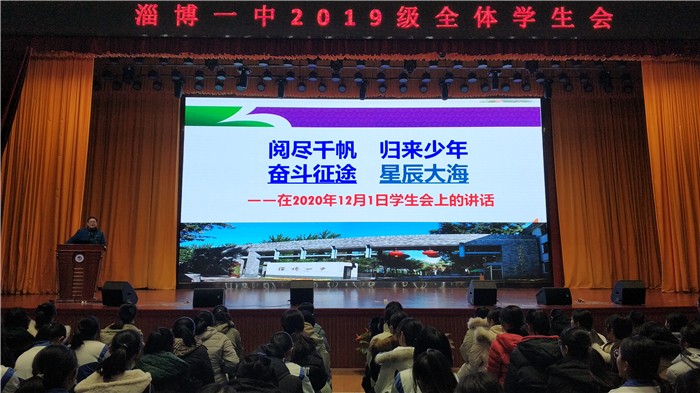 12月1日,我校2019级在体育馆召开了全体学生会,会议以“统一思想 凝聚共识 达成目标 立即行动”为主题,由团委书记张建武主持,年级主任田世军主讲。