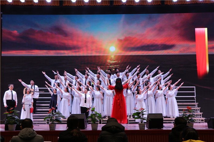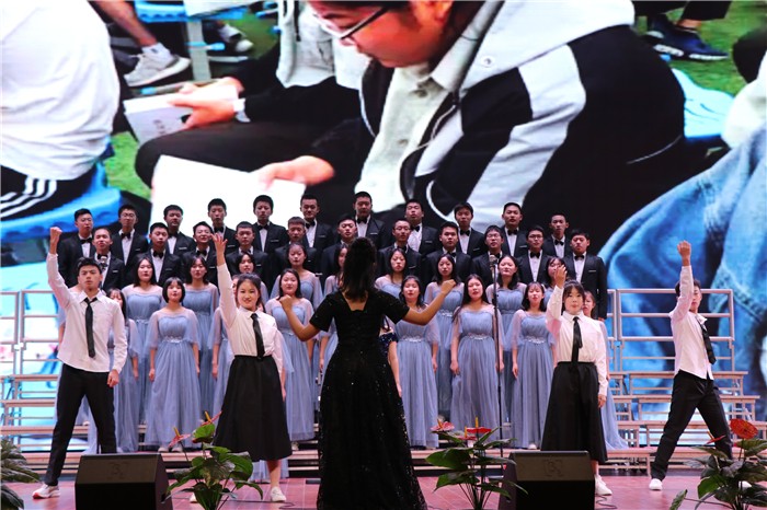 唱响红色旋律,心随祖国腾飞。为纪念“一二·九”学生爱国运动85周年,弘扬爱国精神,重温红色经典,激发广大师生爱国、爱党、爱校的热情,12月5日,我校第三十二届艺术节暨纪念“一二·九”运动合唱比赛在体育馆隆重举行。2020级28个班级参加此次比赛,所有班主任齐上阵为班级助力。