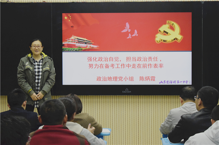 4月8日晚,淄博一中第一党支部全体党员大会在西校区博雅楼自动录播室召开,会议主题是“将党性贯彻始终,将落实进行到底”。