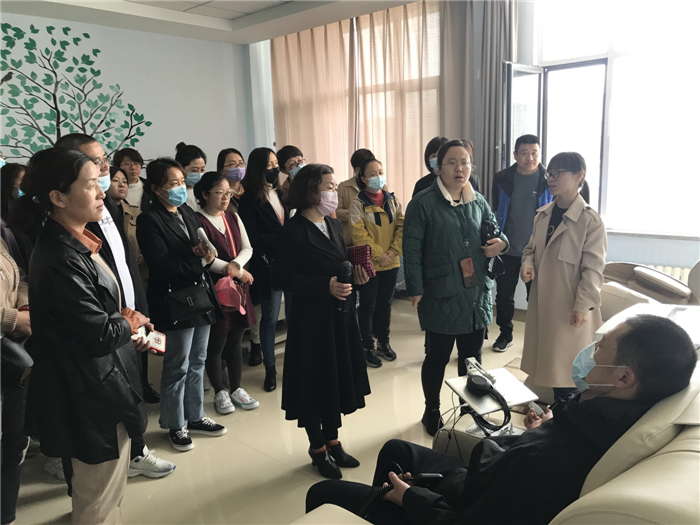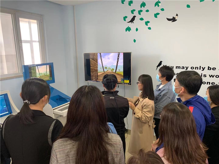 在心理中心,刘文文老师向家长们介绍了心理中心的建设及使用情况,家长们观摩了沙盘室、宣泄室、心语室,还饶有兴趣地体验了虚拟现实体验系统(VR)、智能身心放松系统、智能击打系统等心理设备。