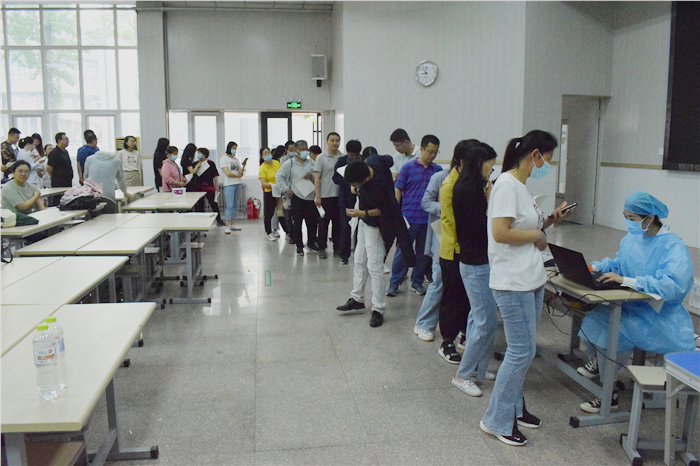 在现场,学校教职工、餐厅工作人员、保安等仔细阅读并签署《新型冠状疫苗接种知情同意书》,医务工作者核对身份信息、咨询健康状况、接种疫苗,流程规范,秩序井然。
