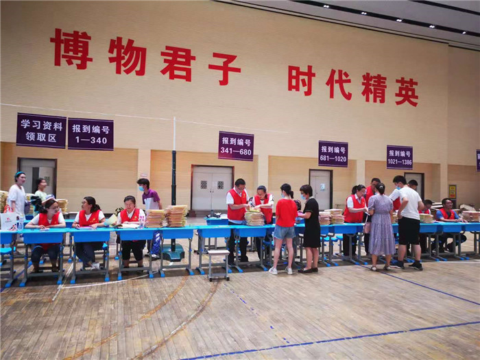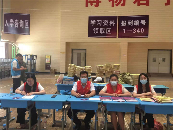 烈日炎炎,暑气逼人,体育馆内,人流如潮。一句句清晰明确的话语,一次次热情洋溢的指引,那是入学咨询区的党员老师们在解答学生和家长的各种疑难问题;一份份寄托着希望的录取通知书,一摞摞凝聚着智慧的学习资料,那是各职能组的党员老师们及时把各种材料整齐有序地分发给学生和家长;还有资助政策的宣传,还有军训服装的领取……虽然报到时间短,人数多,但整体井然有序。