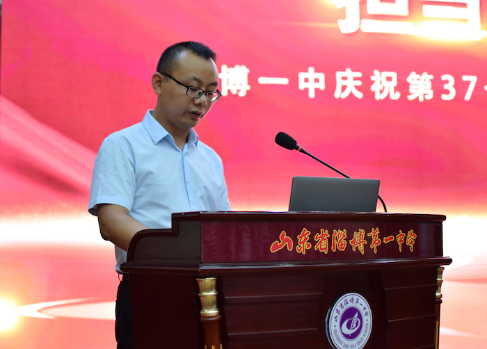 会上,“2021淄博最美教师”称号获得者岳峰老师、学校“十佳班主任”获得者秦枭老师作了典型发言。
