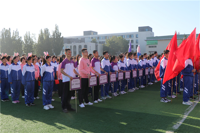 学校党委书记、校长刘加成宣布运动会开幕。工会主席吕永军致开幕词。他回顾了一年来学校的体育成绩,刘盈辰同学参加全国学生运动会,与队友一起获得乒乓球女子团体第一名。2018级体育高考硕果累累,王虎等多名同学被山东大学等高校录取。体育中心岳峰老师荣获2021年淄博市“最美教师”荣誉称号。他指出,体育承载着国家强盛、民族复兴的梦想,运动决定着人们的健康指数、生活质量。作为一年一度的校园体育盛事,田径运动会是对身体素质和运动技能的一次检阅,也是师生欢聚、增进交流、团结拼搏、展示风采的一个平台。他代表学校向为本届运动会的顺利召开洒下辛勤汗水的工作人员、老师们表示衷心的感谢,祝愿本届运动会既精彩热烈,又安全有序。