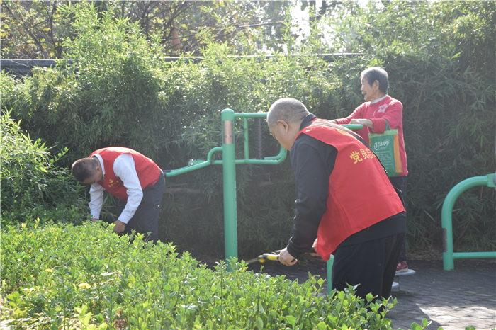 在国庆来临之际,为营造干净整洁、规范有序的节日氛围,按照学校“双报到”活动部署,9月30日上午,行管党支部党员志愿者到四十亩地社区开展志愿服务活动。活动中,志愿者们对小区绿化带进行修剪,对小区卫生死角、废弃杂物、落叶等进行了集中清理,用实际行动倡导社区居民讲文明、树新风,共建美丽家园,为文明城市创建贡献了力量。