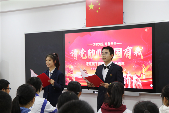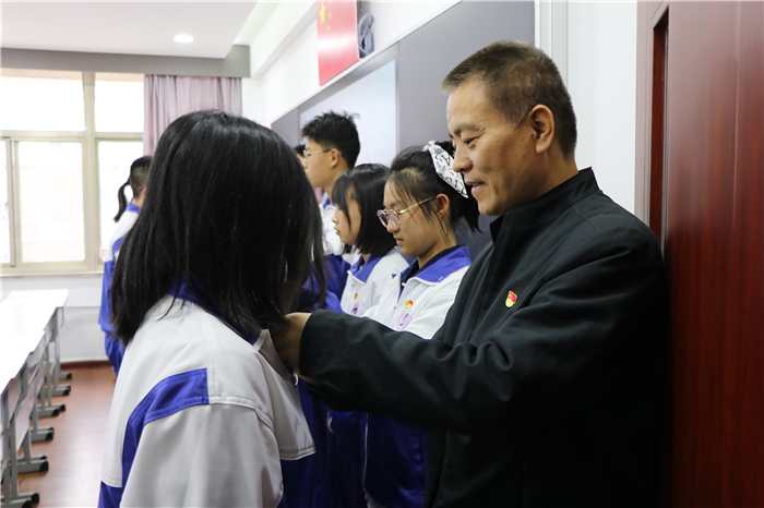 吕永军书记和老团员代表为60名新团员佩戴团徽;2020级团总支副书记张翔宇同学带领全体新团员庄严宣誓,用最洪亮的声音,以崭新饱满的精神面貌,向团组织表明决心;2020级6班新团员代表范马乾元作表态发言;老团员们激情献上 “请党放心,强国有我” 主题朗诵,展现出了新时代团员青年的朝气。