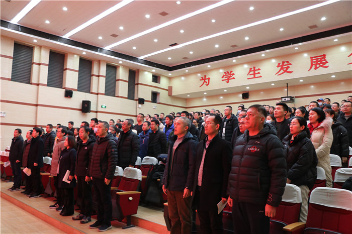会议在雄壮的国歌声中拉开帷幕。学校党委副书记吕永军致开幕词。