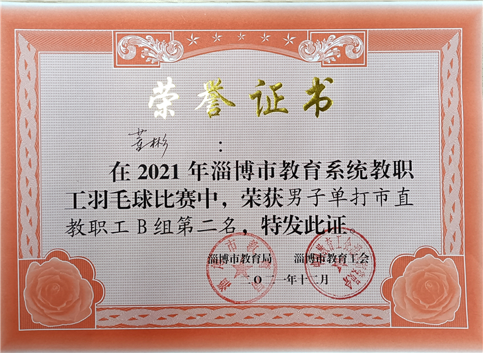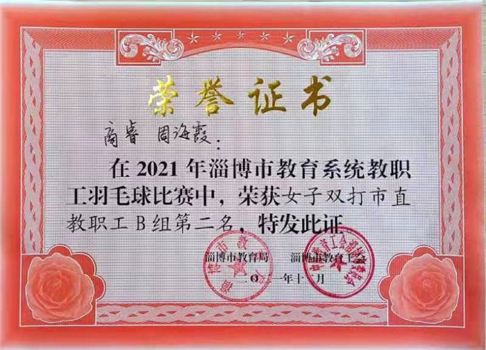 本次比赛设团体项目和个人项目。我校参赛选手精心布阵,打出风格,打出水平,展示了我校教职工的活力与风采。最终获市直团体组第五名,学校获优秀组织奖;单打中男子组市直教职工董彬获B组第二名、李新获A组第六名、王廷凯获B组第八名、市直领导干部吕永军获A组第七名,女子组市直教职工苏红获A组第四名;双打比赛中女子组商睿、周海霞获市直教职工B组第二名,男子组秦本忠、商允端获市直教职工B组第五名。