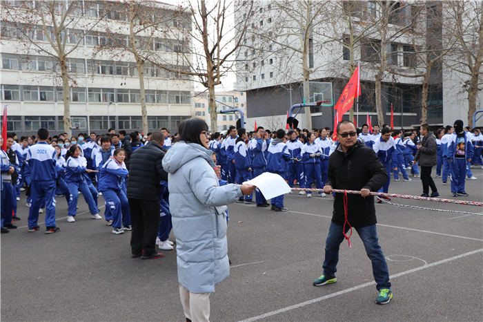 为丰富学生的校园生活,提升班级凝聚力,增强学生集体荣誉感,12月31日下午,2021级举行“庆元旦、迎新年”拔河比赛,2021级全体学生、班主任参加。