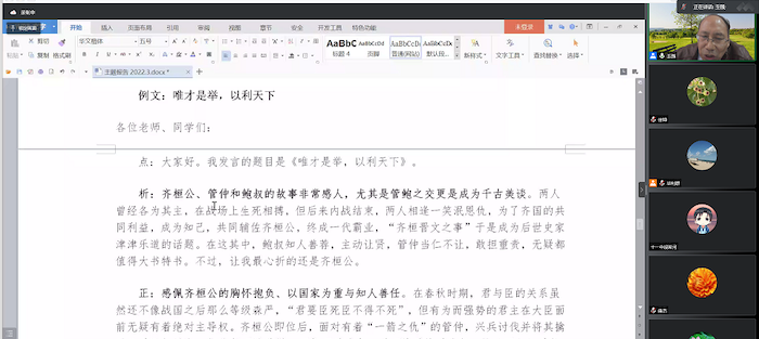 众志成城战疫情,线上教研润无声;一个视频一份暖,字字句句蕴深情。受疫情影响,2022年3月25日,由淄博市基础教育研究院组织、淄博一中承办的高一语文教研会,在腾讯会议线上举行。全市高一语文教师230余人线上参加。
