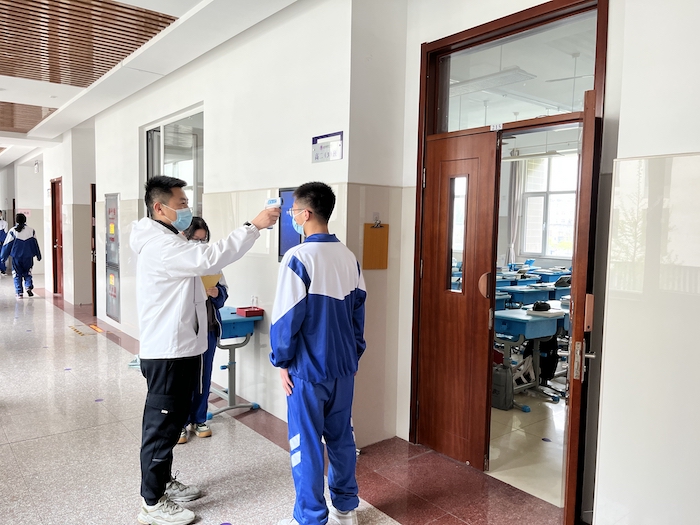 4月12日早上,高一高二两个年级分六个时段错时入校。全体班主任及党员志愿者开展健康码、行程码和核酸检测结果核验工作,帮助同学们有序入校。各班组织开学第一课,班主任讲述了此次疫情期间的各种感人事迹,反馈同学们居家学习情况,引导大家积极调整学习状态,以崭新的面貌投入到紧张的学习中去。班会结束后,各班就每日晨午检、上下学、宿舍入住、错时错峰就餐等流程进行了演练。