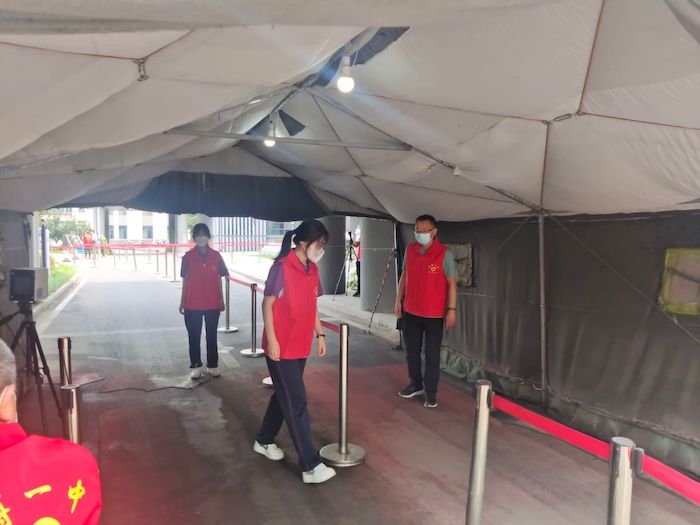 演练前,学校制定了高考疫情防控演练方案,召开了高考疫情防控培训会,细化了责任分工,明确了演练流程与注意事项。