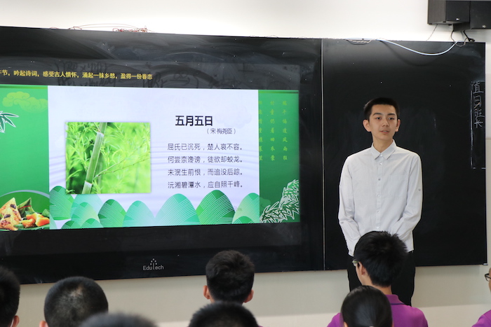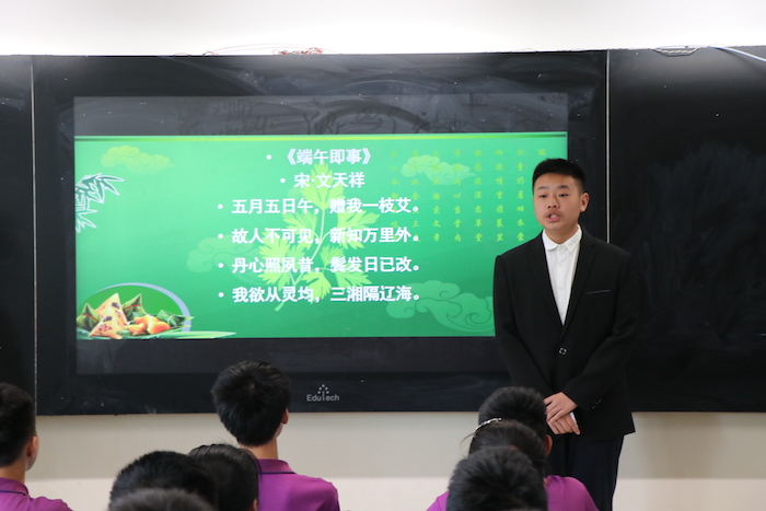 5月30日下午,同学们利用班会课时间举行了主题为“诵读中华经典 争做时代新人”的端午诗歌朗诵活动。通过诵读端午民俗诗歌、屈原诗辞和经典爱国主义诗篇,同学们深入了解了端午节这一传统节日的历史意义,在感受传统文化博大精深的同时,进一步增强了爱国情怀和民族自豪感。