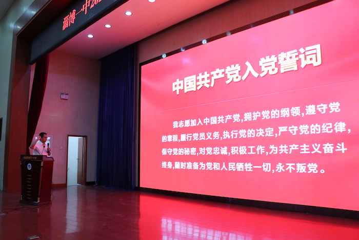 在雄壮的国歌声中,会议拉开帷幕。学校党委书记、校长刘加成带领全体党员重温入党誓词,在铮铮誓言中重温党的初心使命。学校党委委员、副校长李涛宣读《淄博一中关于表彰优秀党员、优秀党务工作者的决定》,马希文等29名同志被表彰为学校优秀党员,冯厚笠等5名同志被表彰为学校优秀党务工作者。学校党委委员分别为获得表彰的同志颁奖。
