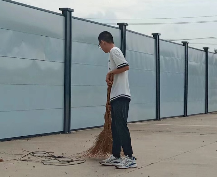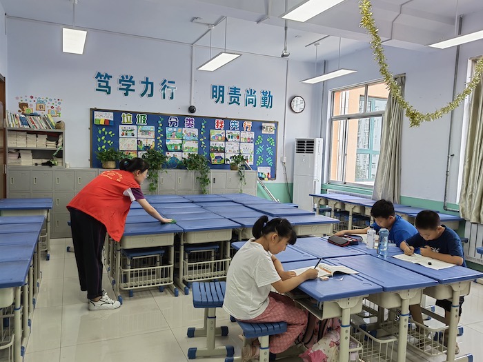 活动期间,有的同学走进社区,清理乱堆乱放物品,清除卫生死角;有的走进小学,协助老师对学生的暑期托管任务;有的走进工厂,打扫车间卫生、对车间垃圾进行分类;有的协助交警一起执勤,进行文明交通劝导、纠正不礼让行为。