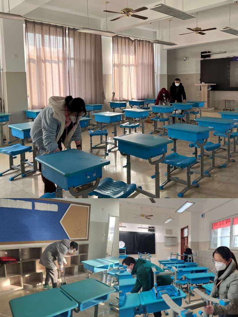 开展“劳动美”志愿服务活动。1月7日下午,志愿者们到各个考场进行卫生整理。大家相互配合、分工明确,有的负责扫地拖地、有的整理桌椅、有的将黑板擦拭得整洁一新,每个教室都变得整洁有序。最后,志愿者逐一检查考场,让考场不再有一片纸屑,为即将到来的听力高考营造了良好的环境。