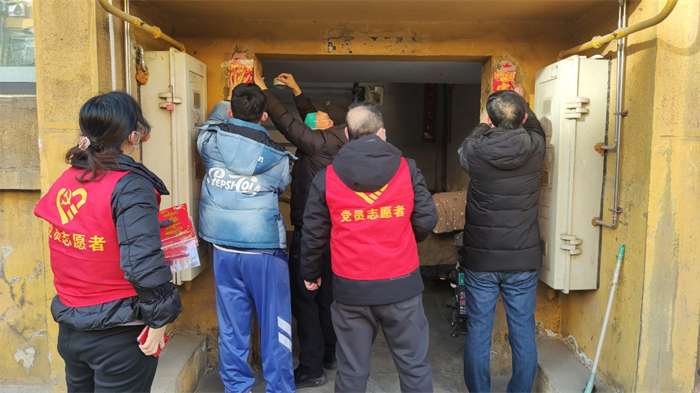 开展迎新春志愿服务。1月19日上午,行管党支部党员志愿者分成五个小组,分别前往文园、馨园进行社区服务。志愿者们不畏寒冷清洁楼栋小广告,张贴春联,装点每一个单元楼宇门,营造出浓厚的节日氛围,与社区居民们喜迎新春。