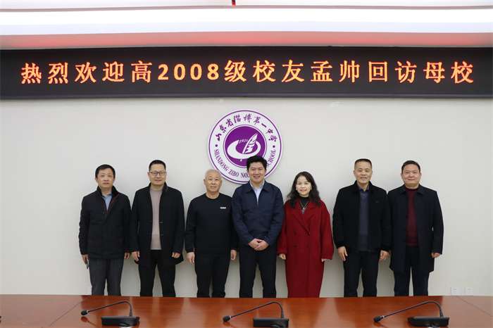 2月17日下午,我校高2008级校友孟帅回访母校,看望老师并为同学们做励志报告。学校党委书记、校长刘加成,党委副书记吕永军,学校校庆顾问、博山区政协五洲四海博山人服务中心主任董振博等参加活动。