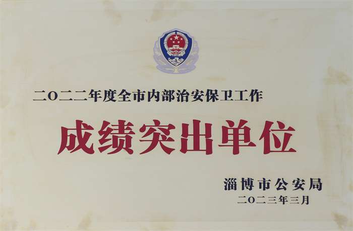 近日,淄博市公安局对2022年度全市治安保卫工作成绩突出单位进行表彰,我校荣获“2022年度全市内部治安保卫工作成绩突出单位”称号。