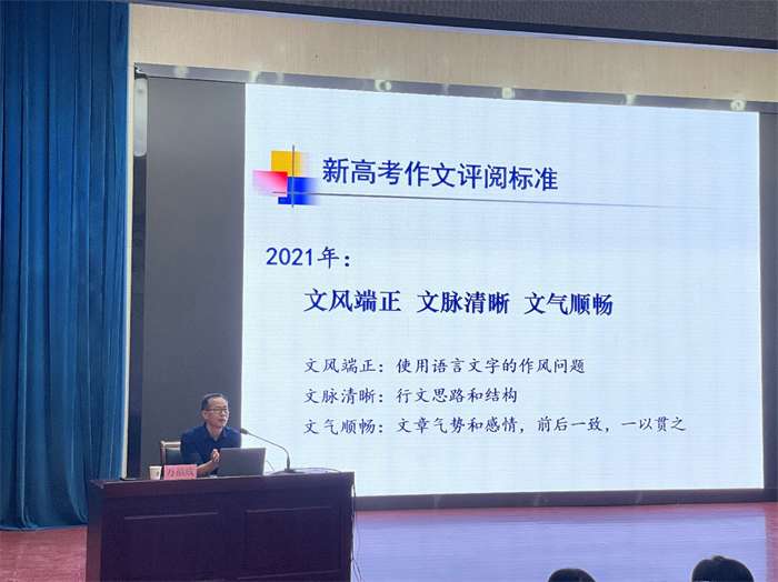 “高屋建瓴明方向,端正文风向未来”。万老师凭借风趣生动的语言和对高考考场作文的深入剖析,不仅在作文审题及写作训练方面给我校语文教学进一步明确了方向,更为高三学子在考前冲刺的关键期注入了强心剂,引起了在场师生的强烈反响。讲座老师们纷纷表示,讲座十分接地气,贴合新高考阅卷标准,为日常教学提供了许多有价值的切入点,同学们更是激动地表示在听完万老师的分析后如拨云见日,豁然开朗。