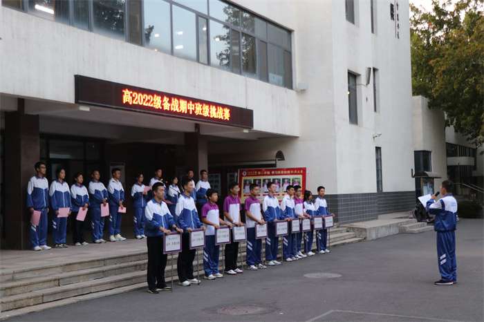 为表彰先进、树立典型,营造积极奋进的学习氛围,10月16日下午,我校2022级在逸夫楼篮球场隆重集会,对各班前期的学习和常规进行总结表彰,并开展了一场别具特色的班级挑战赛。