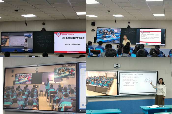 石马中心校数学教师鹿锦晓以《中考专题突破》为题进行了公开课展示,授课过程清新、流畅,学生课堂表现突出、展示环节亮点纷呈,教学效果显著。我校教务处主任肖萍作《数学核心素养视域下初高中贯通培养探索》专题报告,分析了初高中在新课标、核心素养、知识结构、中高考考察等方面的内在联系,既有理论高度,又有例题分析。在评课交流环节,老师们各抒己见,共同讨论了如何做好初高中贯通培养和数学衔接教学。