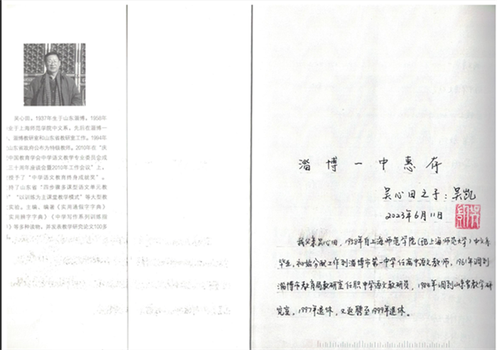四位老校友于1962年高中毕业分别考入山东师范大学、北京工业学院(现北京理工大学)、天津大学、北京师范大学。他们此行,不仅是为了重温校园时光,更是带着一份特殊的使命,向学校赠送当年班级毕业照和原始学习资料,并受原淄博一中语文教师、山东省语文教研室教研员吴心田之子吴凯校友的委托,向学校转赠《吴心田语文教育思想与研究》一书。