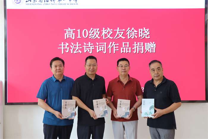 7月10日上午,我校高10级校友徐晓回访母校,捐赠自著诗词作品《荷香集》7本、书画作品两幅。我校曾任职教师、原市政府副秘书长刘新胜先生陪同并代表其子刘冠伟捐赠出版作品《锂光动力电池硬核入门》,祝贺一中百年华诞。学校党委书记刘加成、校庆办主任赵玉明等热情接待。